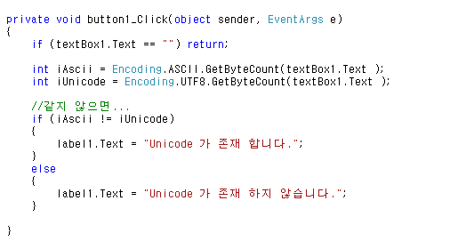 label1.Text = "Unicode 가 존재 합니다.";