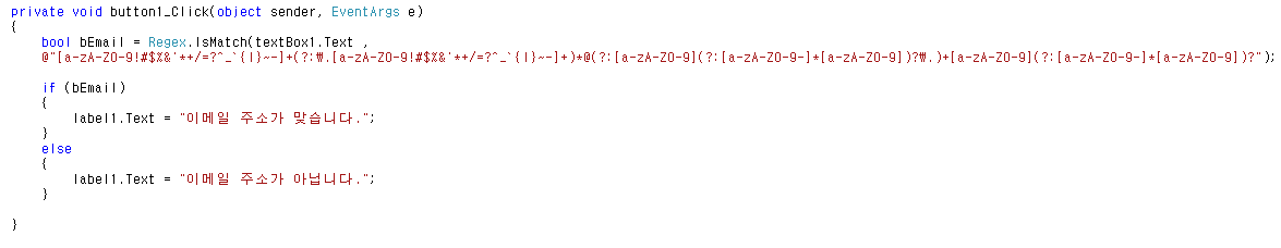 * C# Regex 를 이용한 간단한 이메일 주소 체크 예제...