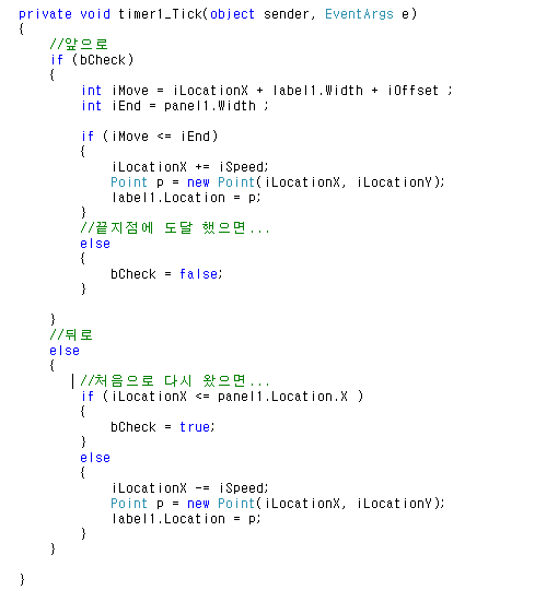 -사용한 컨트롤 : Label 1 개, Panel 1개, Timer 1개