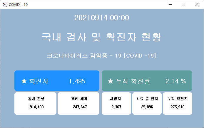 코로나 집계에 관련된 버그라 소스코드 작성 하시는 분들이 테스트 해 보시고 맞게 코드를 최적화 하시면