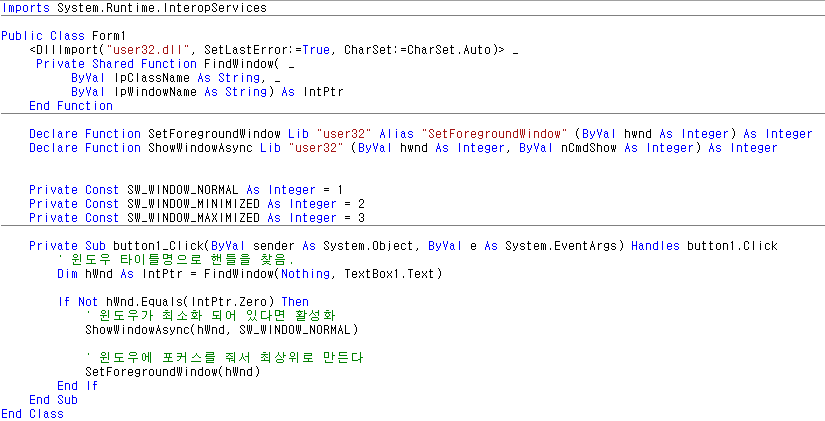 * VBNET API 윈도우 (Window) 창 찾기 예제...