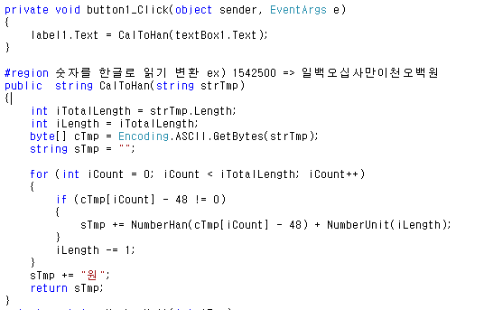 * C# 숫자(금액) 을 한글로 변환 하기 예제...