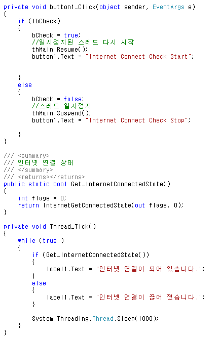 * C# API 이용 인터넷 연결 체크 예제... (Internet Connect Check)