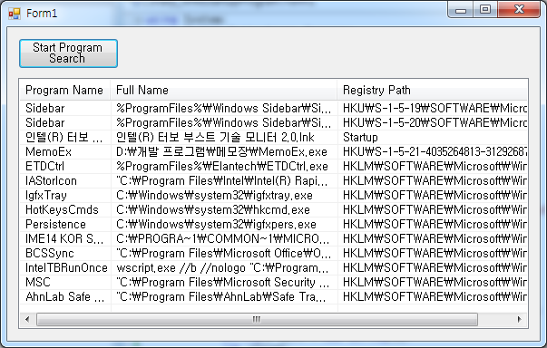 * C# WMI 를 이용한 윈도우 시작 시 시작되는 프로그램 조회 예제...
