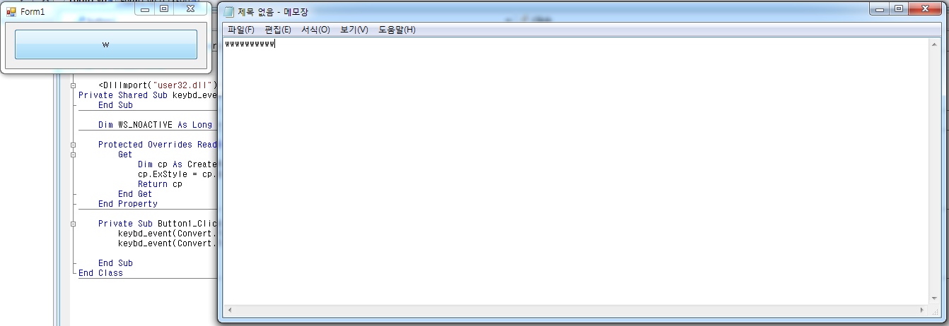 keybd_event(Convert.ToByte(Keys.W), 0, &H2, 0) 'KeyUp