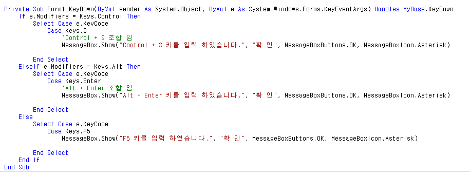 - Form KeyDown 이벤트를 받아서 구현 해 주는 방법