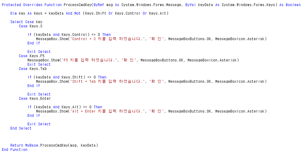 Protected Overrides Function ProcessCmdKey(ByRef msg As System.Windows.Forms.Message, ByVal keyData As System.Windows.Forms.Keys) As Boolean
