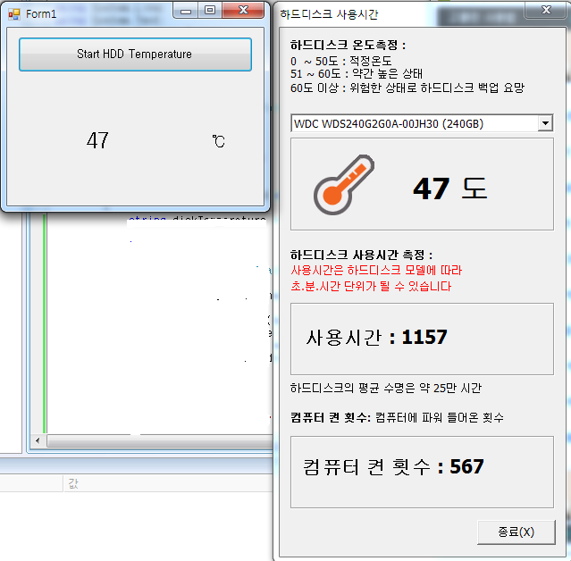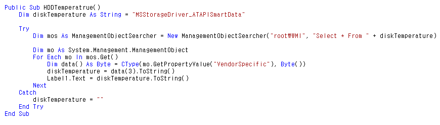 * VBNET WMI 를 이용한 하드 디스크 온도 체크 예제 (HDD Temperature)