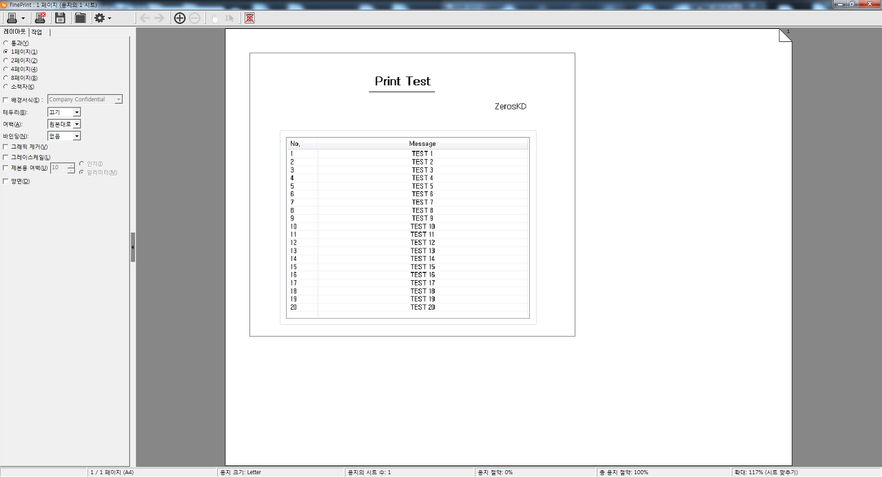 위 그림 처럼 가상 프린트에 폼(Form) 화면이 그대로 인쇄된 모습을 볼 수 있습니다.