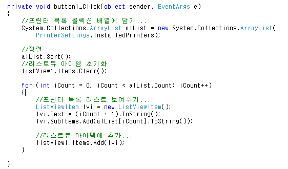 * C# 제어판 프린터 (Printer) 목록 불러오기 예제...