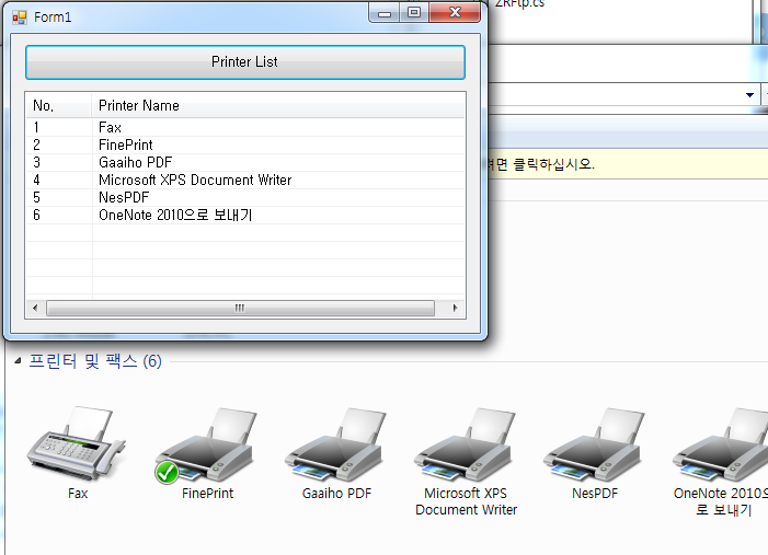 [C#] 제어판 프린터(Printer) 목록 불러오기