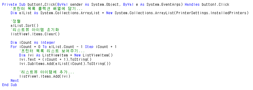 * VBNET 제어판 프린터 목록 불러 오기 예제...