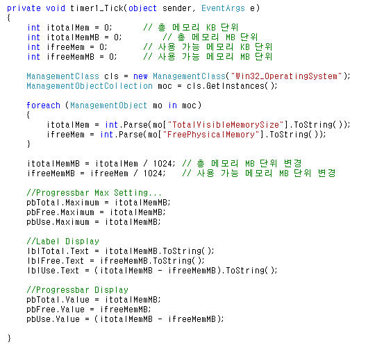 *C# WMI 를 이용한 실시간 메모리 사용량 체크 (Memory Check) 예제...