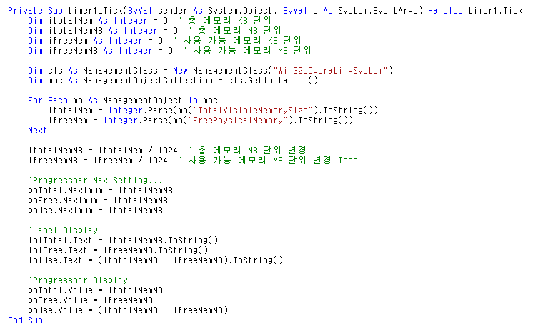 Dim itotalMem As Integer = 0 ' 총 메모리 KB 단위