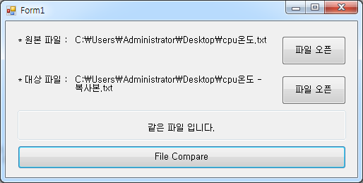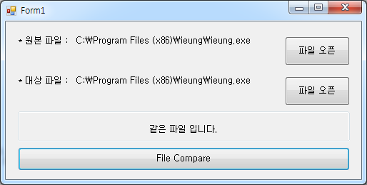 lblCompare.Text = "같은 파일 입니다.";