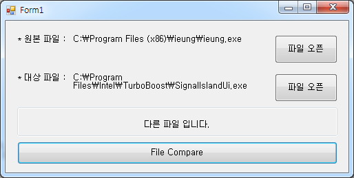 lblCompare.Text = "다른 파일 입니다.";