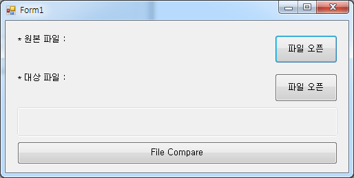 * C# 파일 비교 (File Compare) 예제... - 사용한 컨트롤 : Label 5개 , Button 3개 , GroupBox 1개 전체 소스 코드 Form1.cs using System; using System.Collections.Generic; using System.ComponentModel; us..