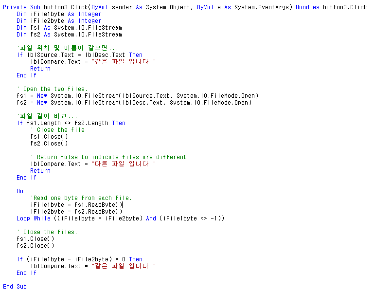 Loop While ((iFile1byte = iFile2byte) And (iFile1byte <> -1))