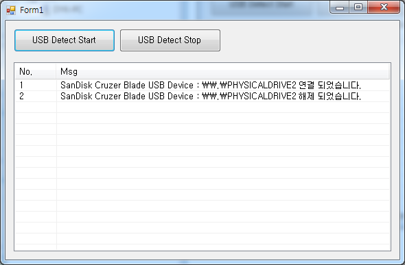 lvi.SubItems.Add(strUSBDriveName + " : " + strUSBDriveLetter + " 해제 되었습니다.")