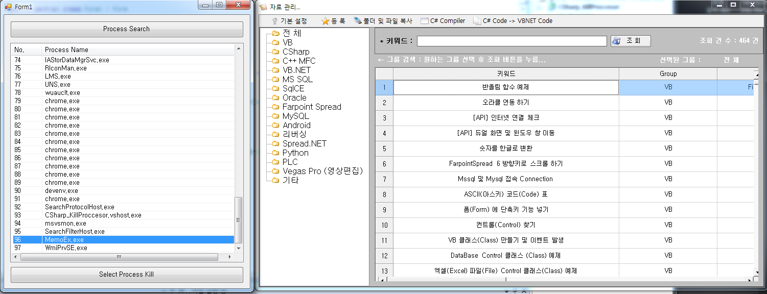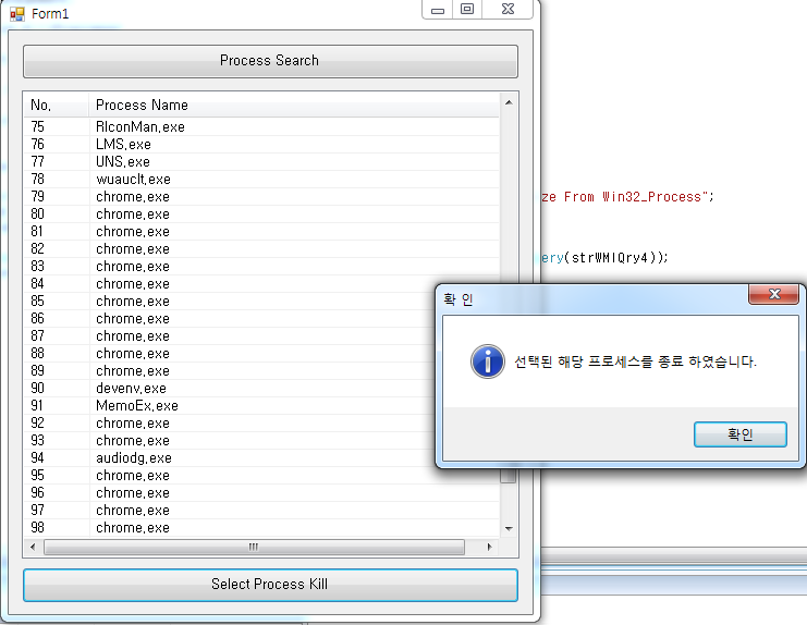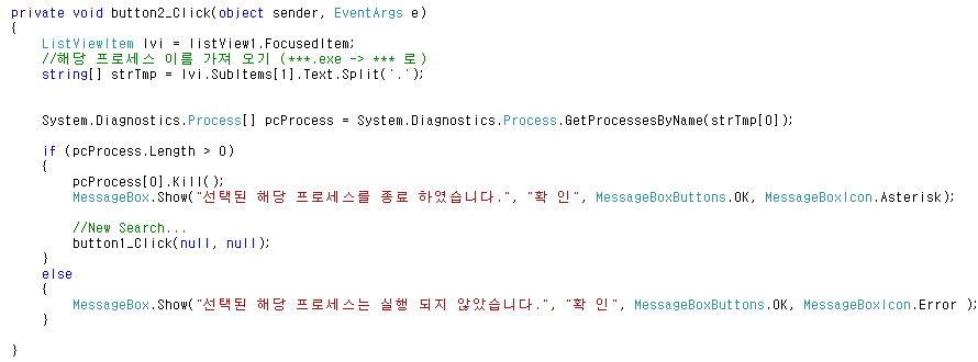 * C# 사용자가 선택한 프로세스 죽이기 예제...
