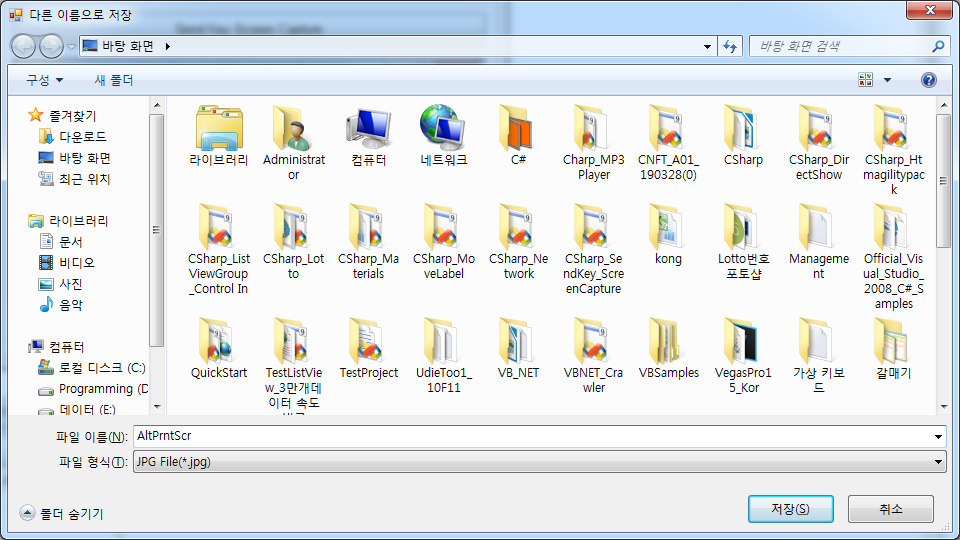 이미지 파일로 저장 하는 모습 입니다. (SendKeys.SendWait ("%{PRTSC}"))