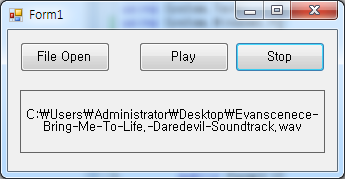 *C# API 를 이용한 Wav 파일 재생 예제... - 사용한 컨트롤 : Button 3개, Label 1개 전체 소스 코드 Form1.cs using System; using System.Collections.Generic; using System.ComponentModel; using System.Dat..