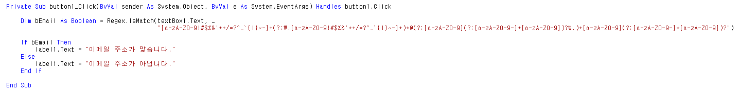 * VBNET Regex 를 이용한 간단한 이메일 주소 체크 예제...