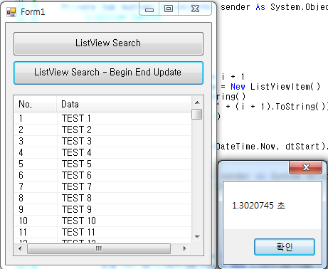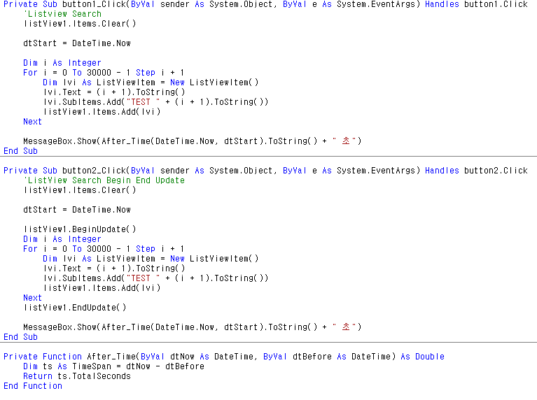 * VBNET Listview 데이터 조회 BeginUpdate , EndUpdate 예제