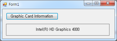 버튼 클릭 시 위와 같이 그래픽카드 정보를 얻어 올 수 있습니다.