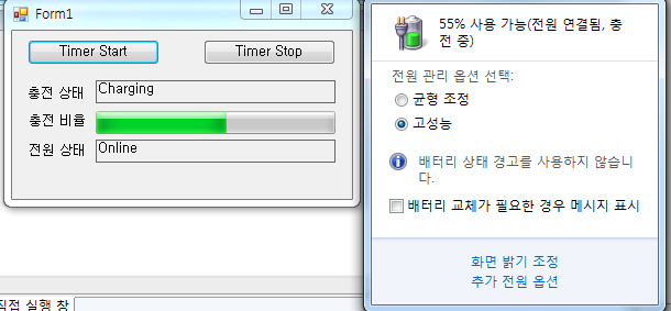 - 사용한 컨트롤 : Button 2개, TextBox 2개, Label 3개, 프로그래스바 1개, Timer 1개