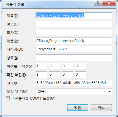 * C# 프로그램 버전 확인(Program Version Check) 예제...