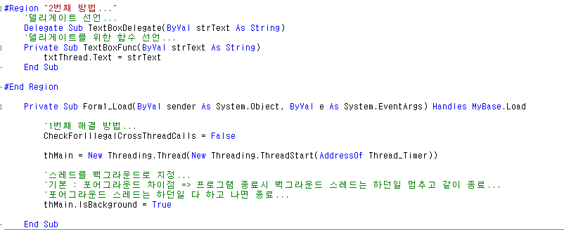Me.Invoke(New TextBoxDelegate(AddressOf TextBoxFunc), "크로스 스레드 예제...")