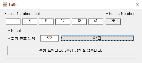 lblResult.Text = "축하 드립니다. 5등에 당첨 되셨습니다.";