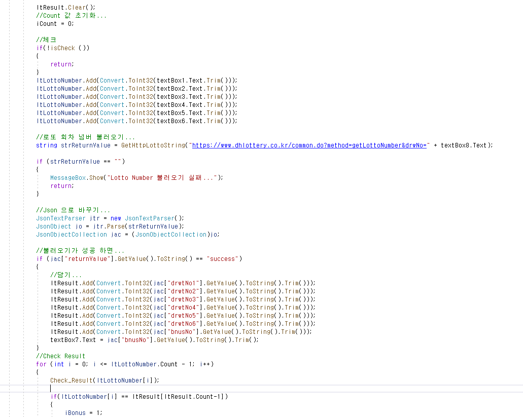 string strReturnValue = GetHttpLottoString("https://www.dhlottery.co.kr/common.do?method=getLottoNumber&drwNo=" + textBox8.Text);