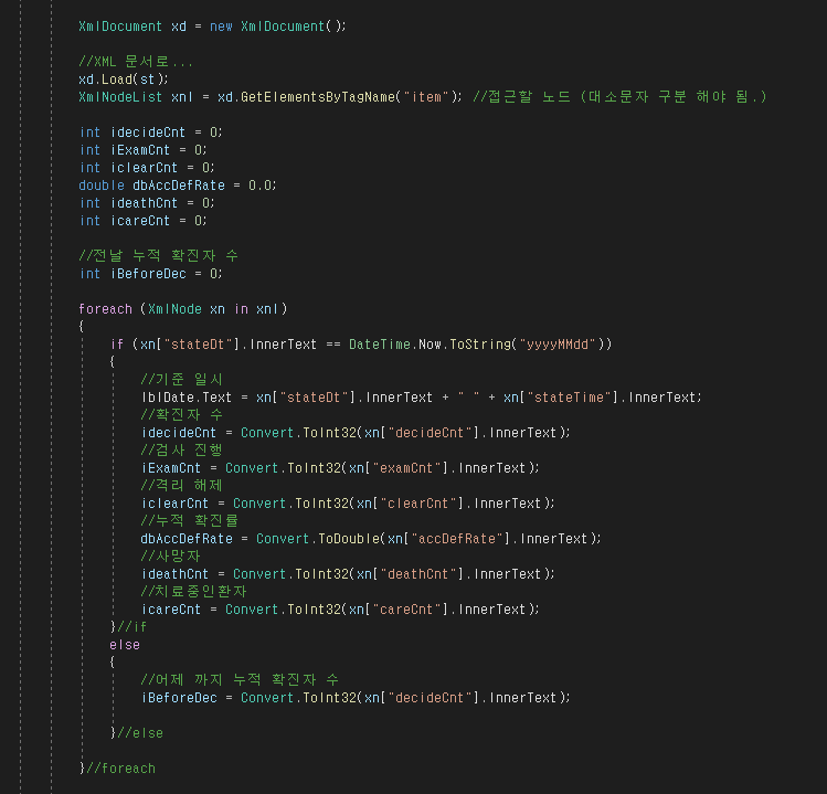 *C# 공공데이터를 이용한 코로나 확진자 현황...