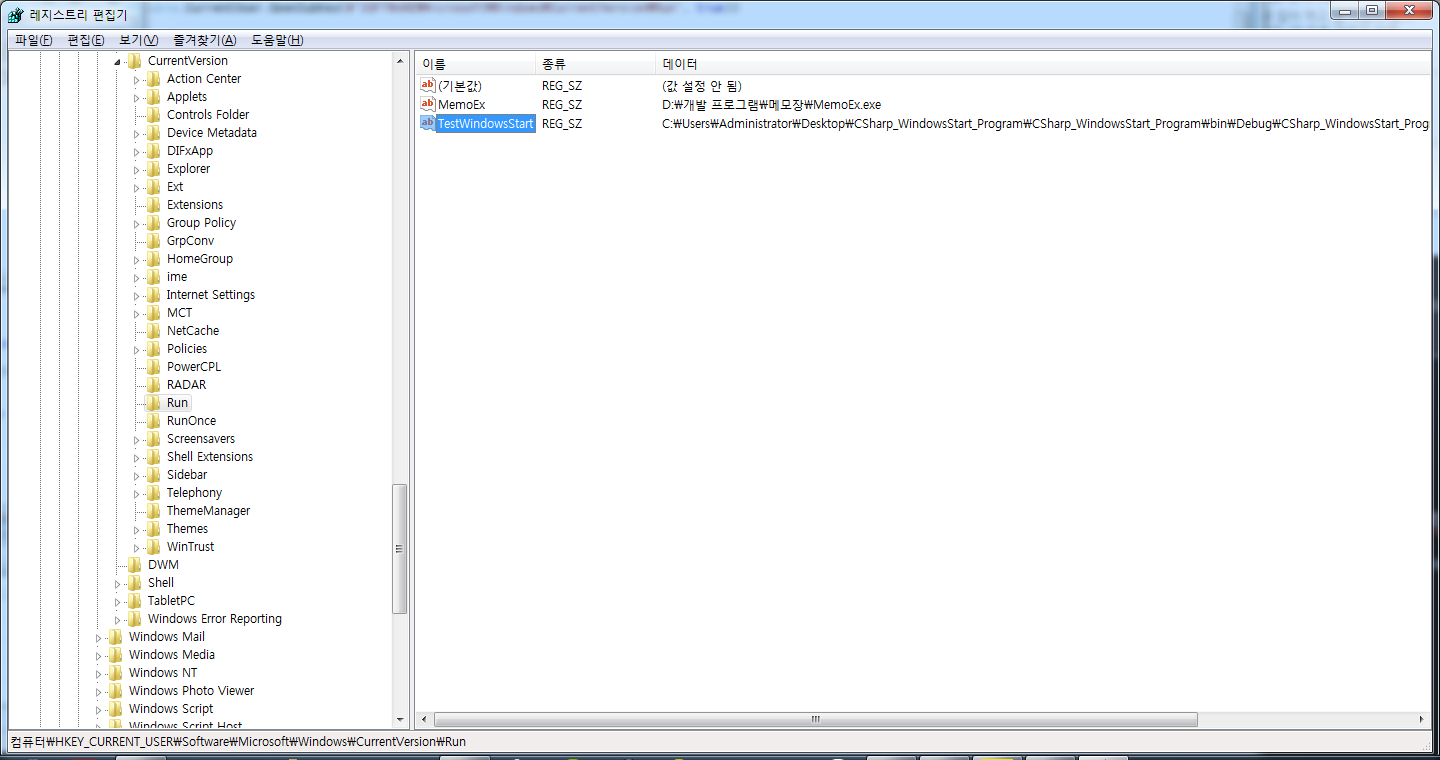 * 윈도우 레지스트리를 이용 하여 윈도우 시작 시 프로그램 자동 실행을 만들어 보겠습니다.