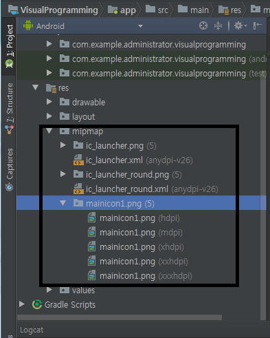 android:icon="@mipmap/mainicon1" <- 아이콘 변경 부분