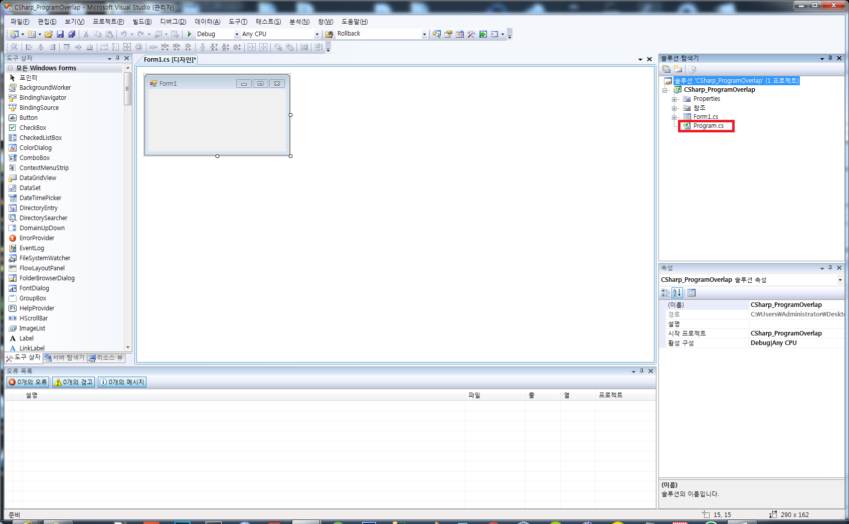 또는 Form1.cs 안에서 구현 가능 합니다.