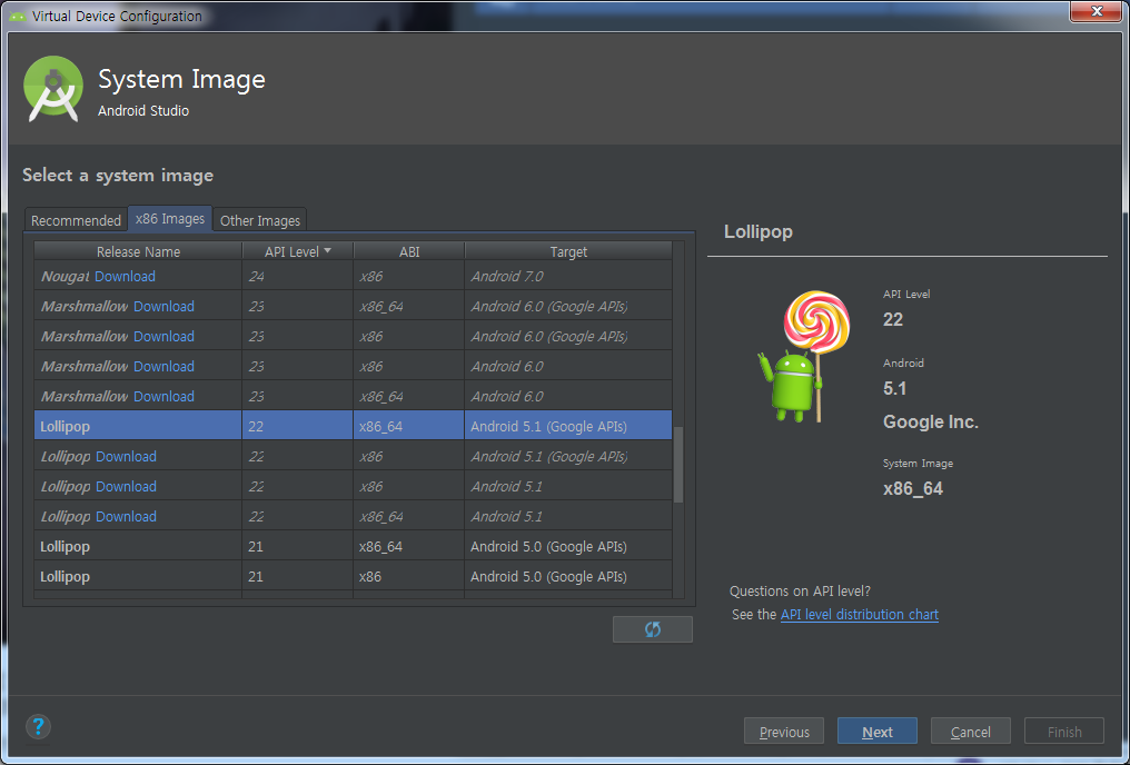 저 같은 경우는 롤리팝 버전으로 Android 5.1 과 Android 5.0 을 같이 설치 했으며 붉은 테두리 에