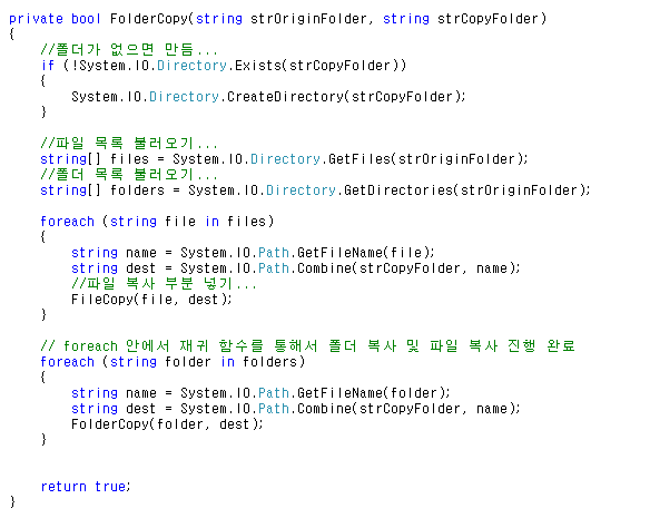 private bool FolderCopy(string strOriginFolder, string strCopyFolder)