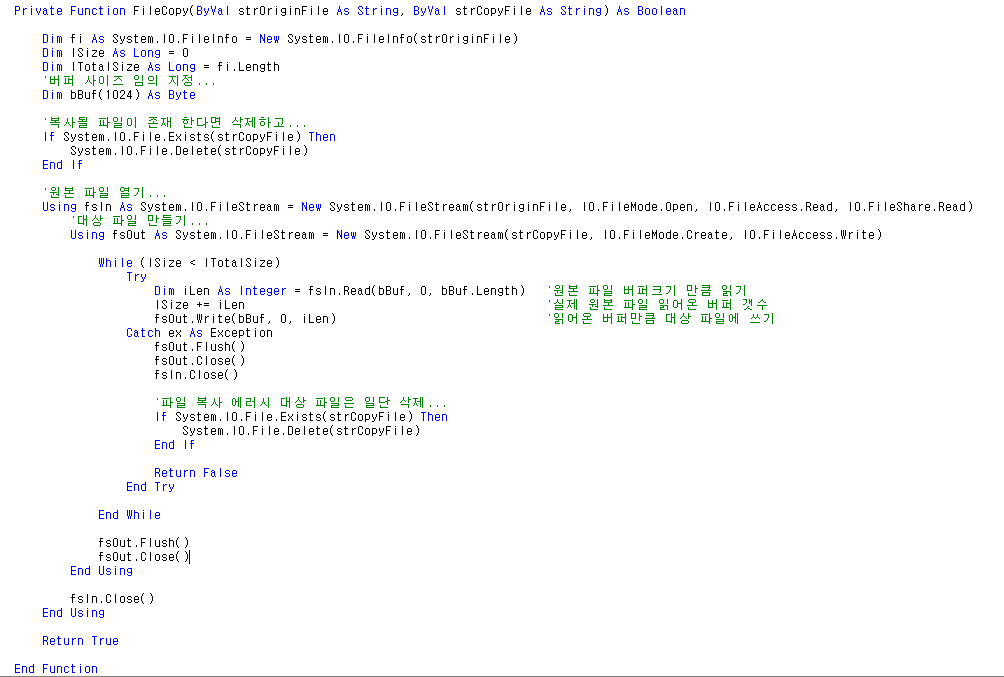 * VBNET 파일 복사 예제... 전체 소스 코드 Form1.vb Public Class Form1 '첫번째 방법... Private Sub button1_Click(ByVal sender As System.Object, ByVal e As System.EventArgs) Handles button1.Click Dim..