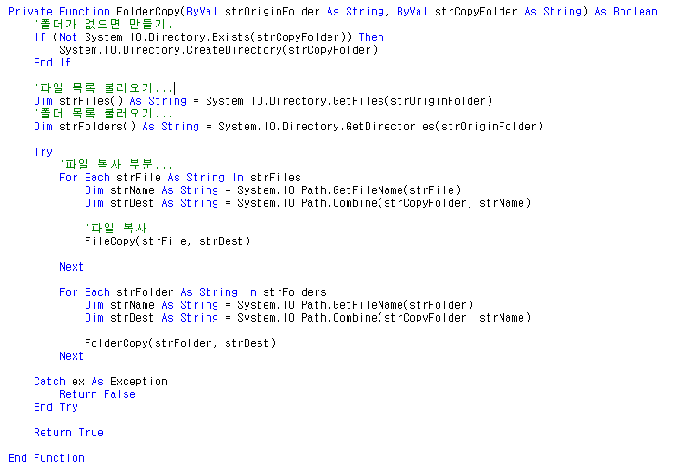 Private Function FolderCopy(ByVal strOriginFolder As String, ByVal strCopyFolder As String) As Boolean