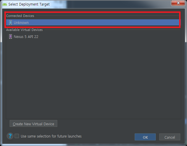 Devices 에 USB 로 연결된 휴대폰이 뜨면 성공 안뜨면...