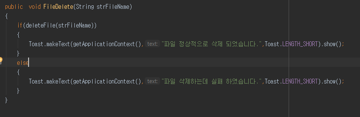 Toast.makeText(getApplicationContext(),"파일 정상적으로 삭제 되었습니다.",Toast.LENGTH_SHORT).show();