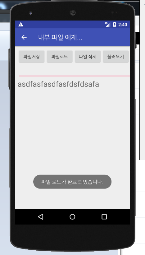 Toast.makeText(getApplicationContext(),"파일 로드가 완료 되었습니다.",Toast.LENGTH_SHORT).show();