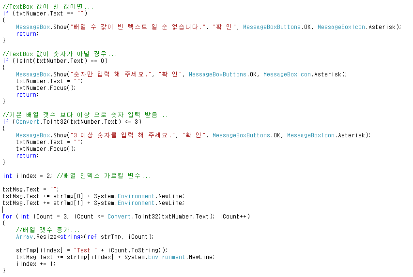 //TextBox 값이 숫자가 아닐 경우...