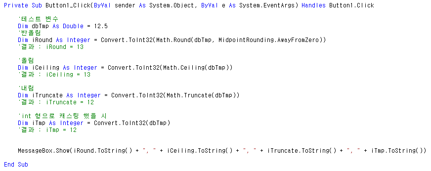 위 소스코드를 보면 Math.Round() 함수에 인자가 반드시 열거형 인자 MidpointRounding.AwayFromZero