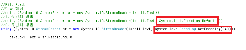 | [C#] 텍스트 파일 읽기 (Txt File Read) - 한글 깨짐 방지 (0) | 2020.01.19 |