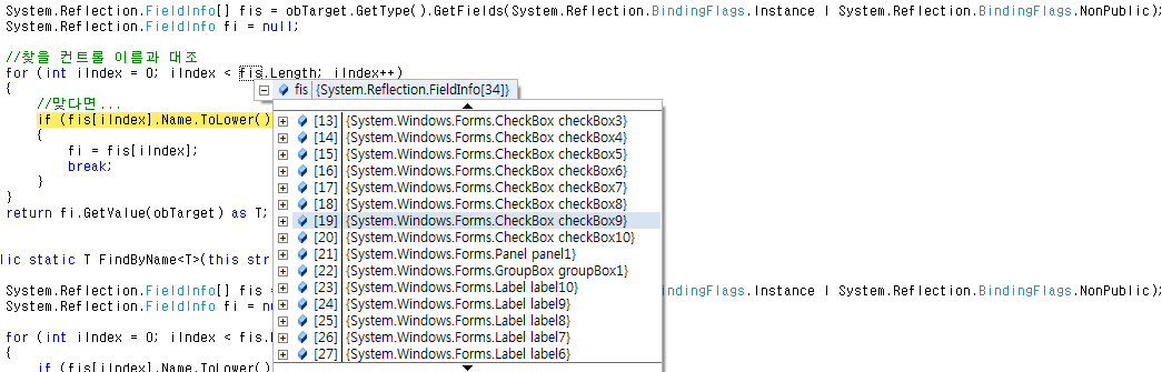 // 여기서 위 그림과 같이 Form1 디자이너에 선언된 필드들(즉 Private 변수들)을 얻어 오게 됩니다.