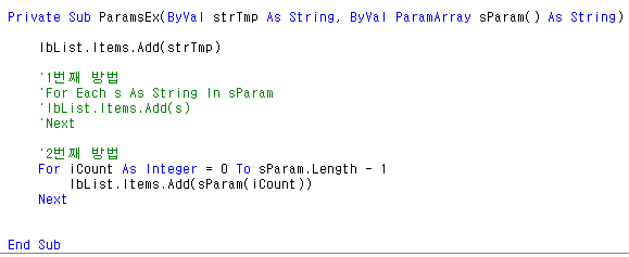 * VBNET 가변 전달 인자 Params 키워드 예제...